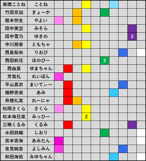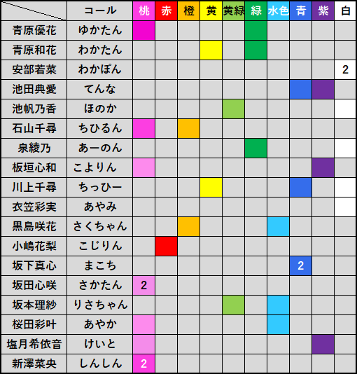 NMB48メンバーカラーとコールの一覧表になります。随時更新も行っていますので、参考にして頂ければ幸いです。